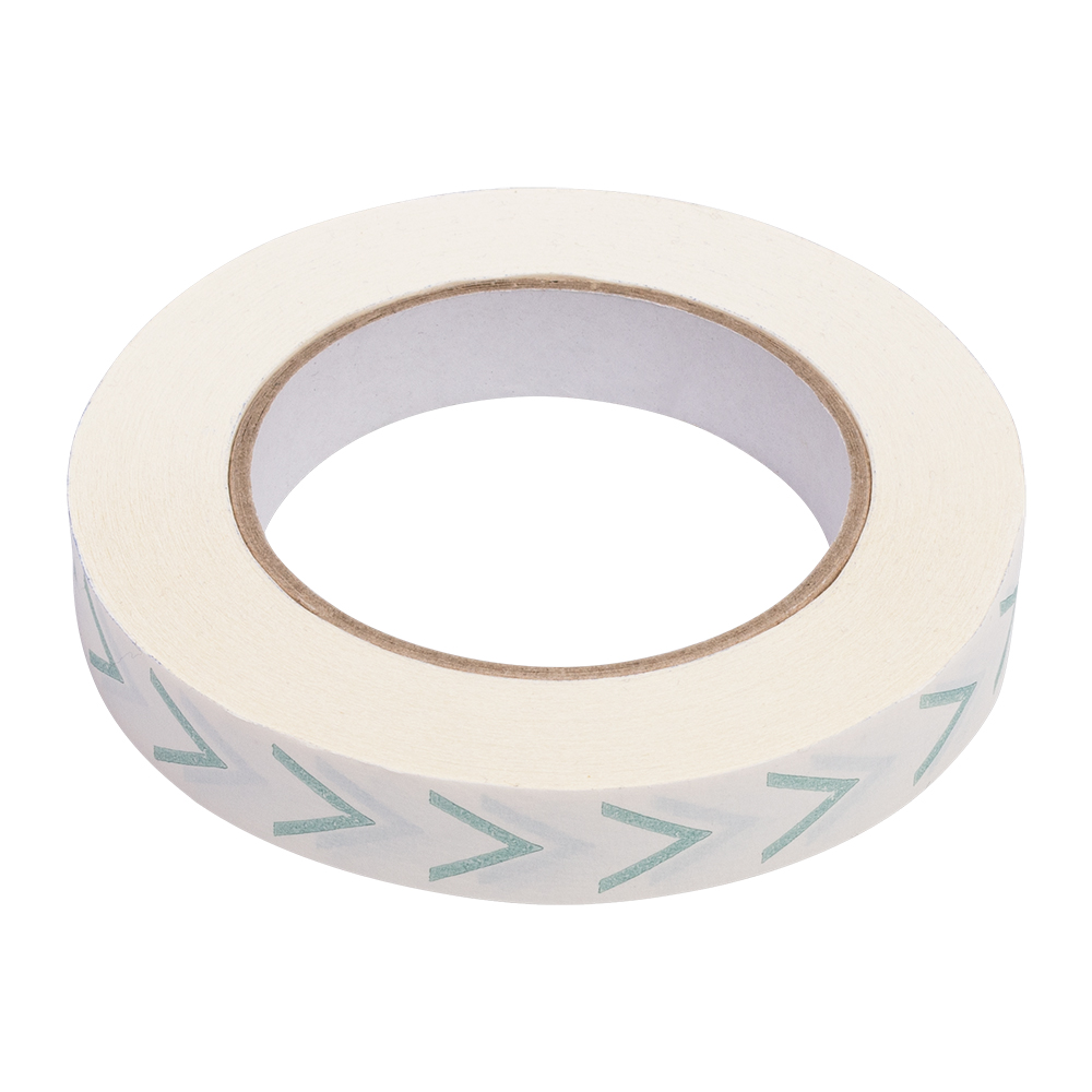Индикаторная лента для воздушной стерилизации представляет собой бумажный рулон с липким слоем с одной стороны и индикатором 1-го класса – с другой.